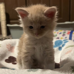 Zimba is a stunning 3-week-old Maine Coon kitten with a strong build and sweet temperament. He will be ready for his forever home after he is fully weaned and vet-checked.