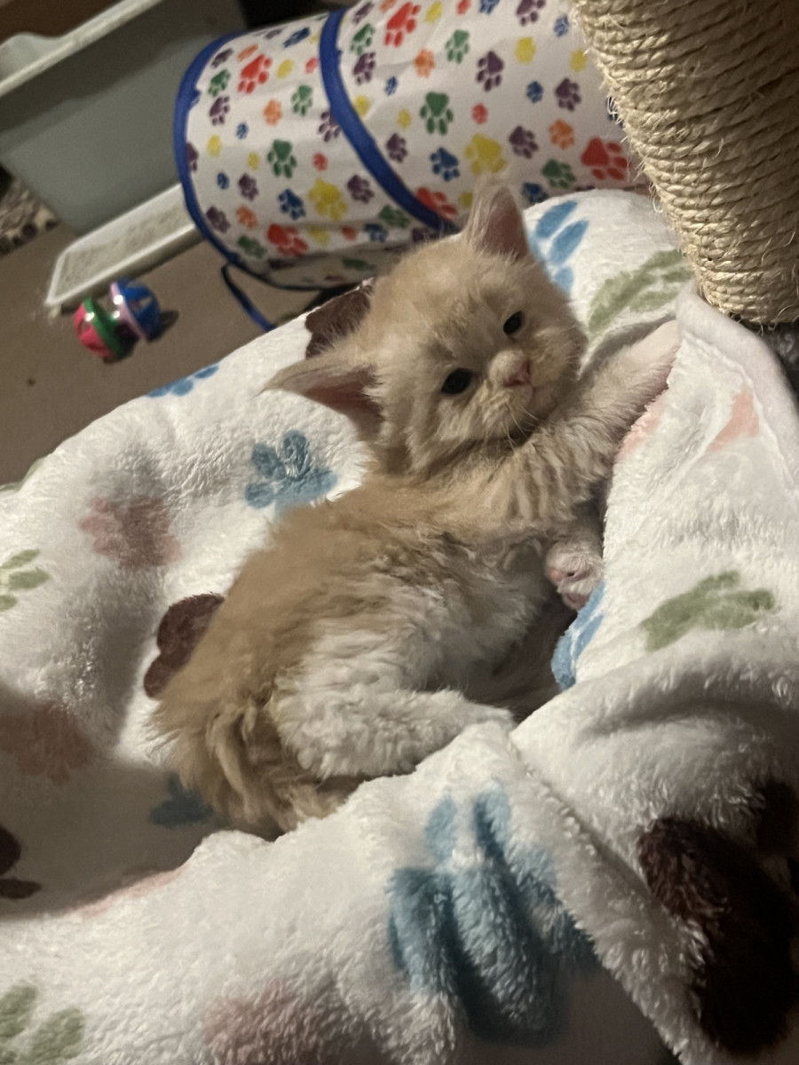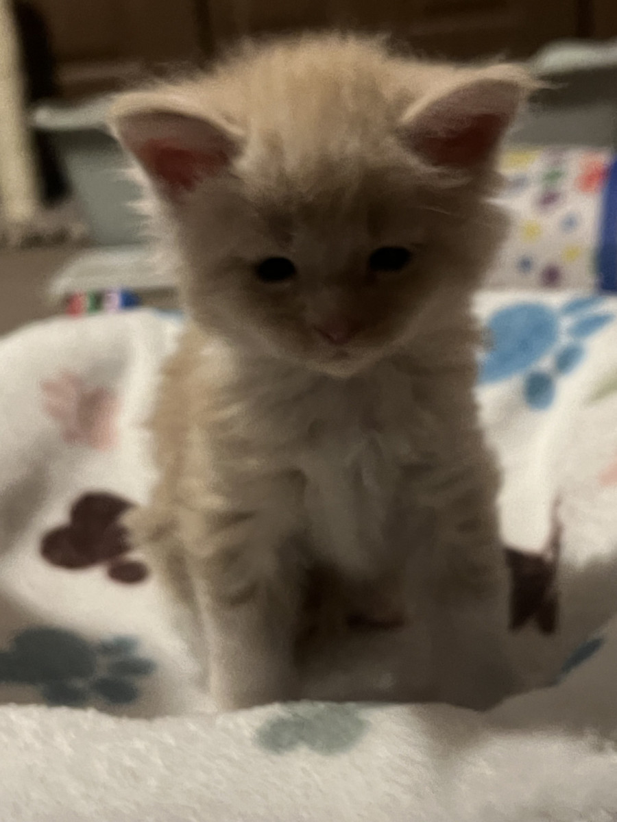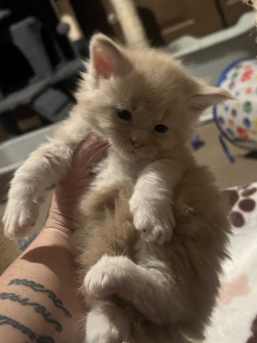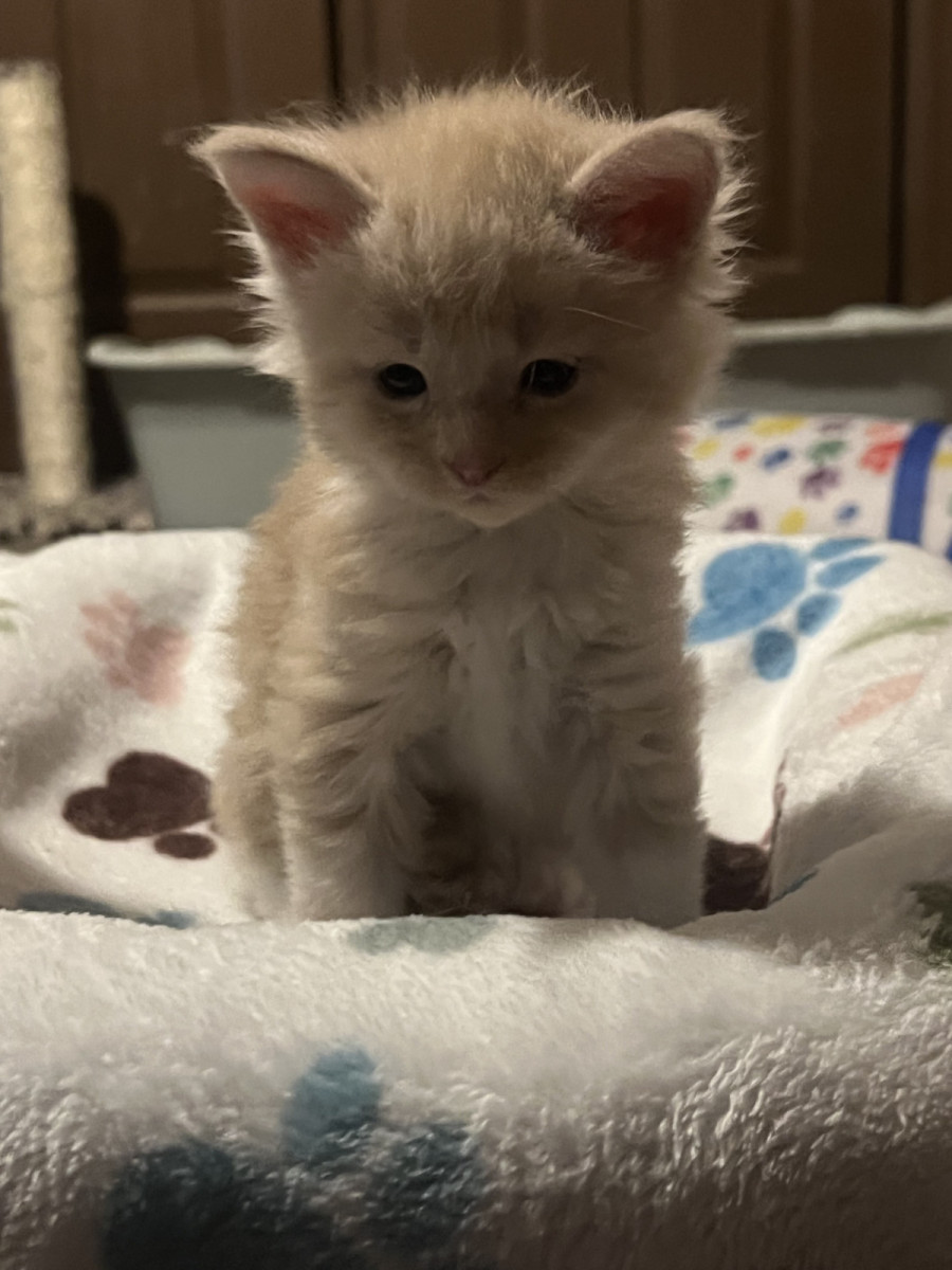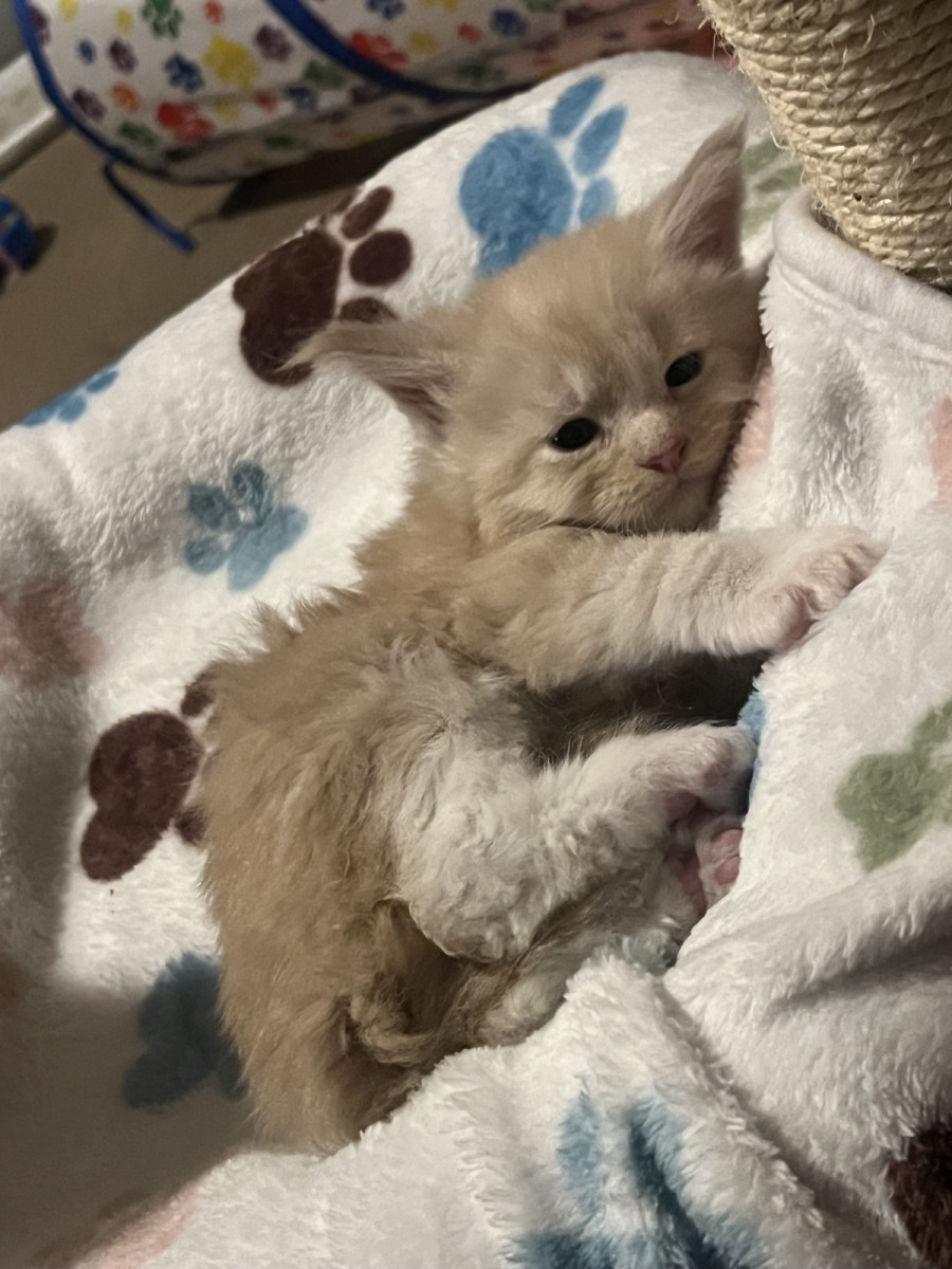 Zimba is a stunning 3-week-old Maine Coon kitten with a strong build and sweet temperament. He will be ready for his forever home after he is fully weaned and vet-checked.